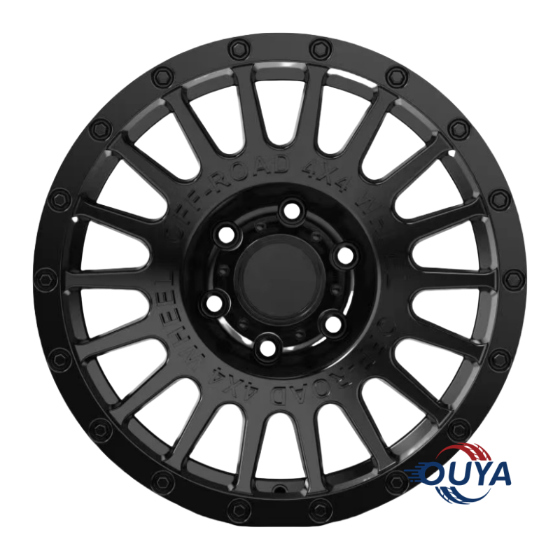 This 16–20″ off-road wheel, inspired by Fuel® designs, features a rugged multi-spoke layout with a simulated beadlock ring and a matte black finish accented by precision-machined surfaces. Ideal for trucks and SUVs seeking a bold, adventure-ready look, with custom PCD, offset, and color options available.