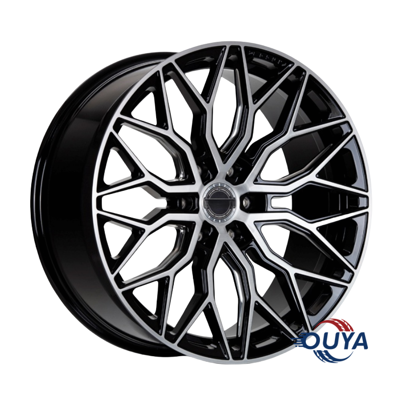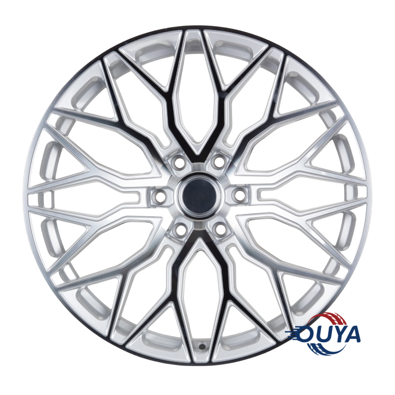 This 20-inch alloy wheel features a sleek multi-spoke Y-pattern inspired by popular Vossen-style designs. With a high-gloss silver finish and intricate structure, it delivers a luxurious and sporty look, perfect for sedans and high-end SUVs.