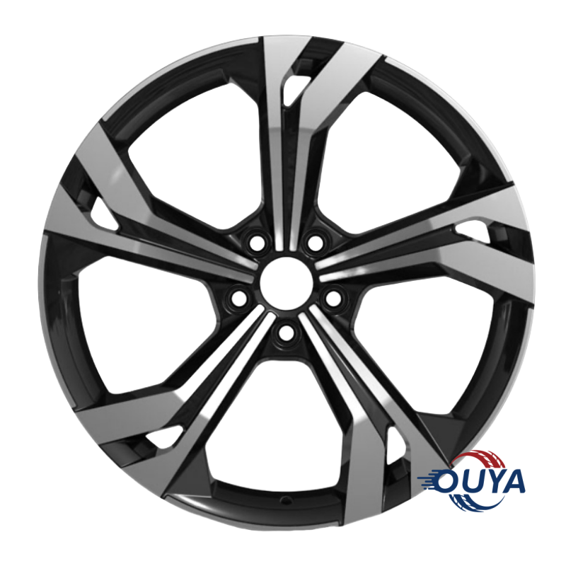 This wheel features a sharp twin 5-spoke design with an aggressive profile, finished in gloss black with diamond-cut highlights. Its bold styling pairs perfectly with Audi SUVs such as the Q5, Q7, and Q8, enhancing both stance and presence.